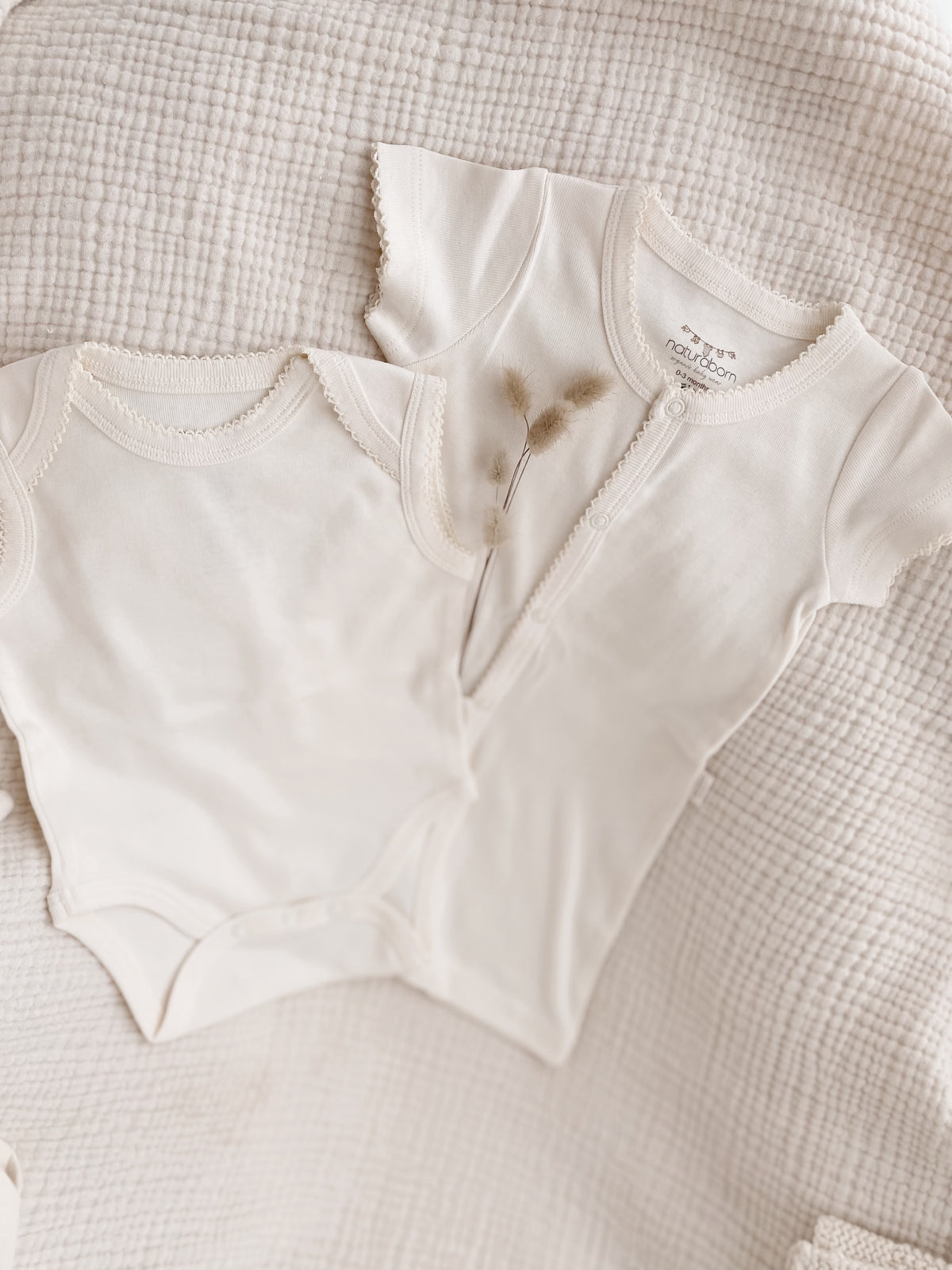 Naturaborn GOTS Organik Sertifikalı Kroşetalı Kolsuz Bebek Body